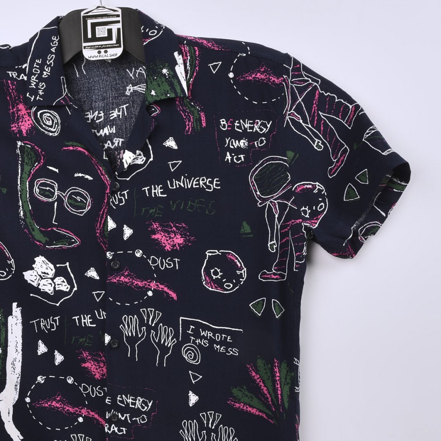 قميص خامة قطنية مريحة جدا وبفصال حركي جميل باللون الاسود مع حركات شكلية وكتابية