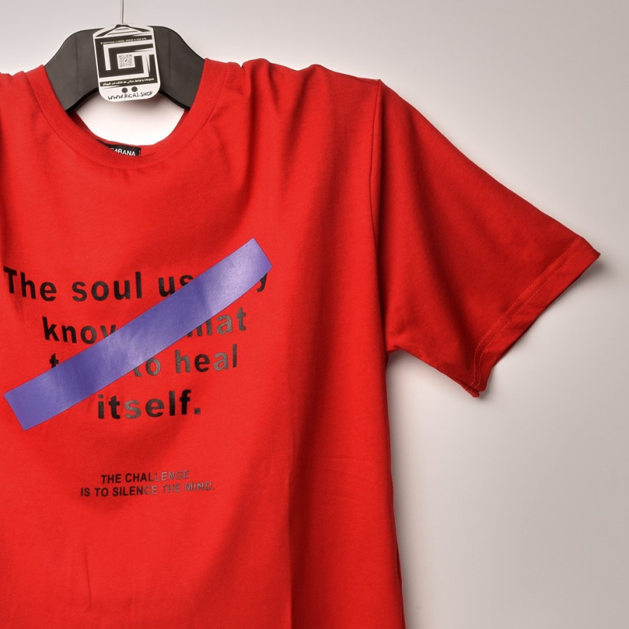 قالب شبه اوفر سايز ((فصال اوربي)) تيشرت قطني مطبوع ميمز عنق دائري احمر