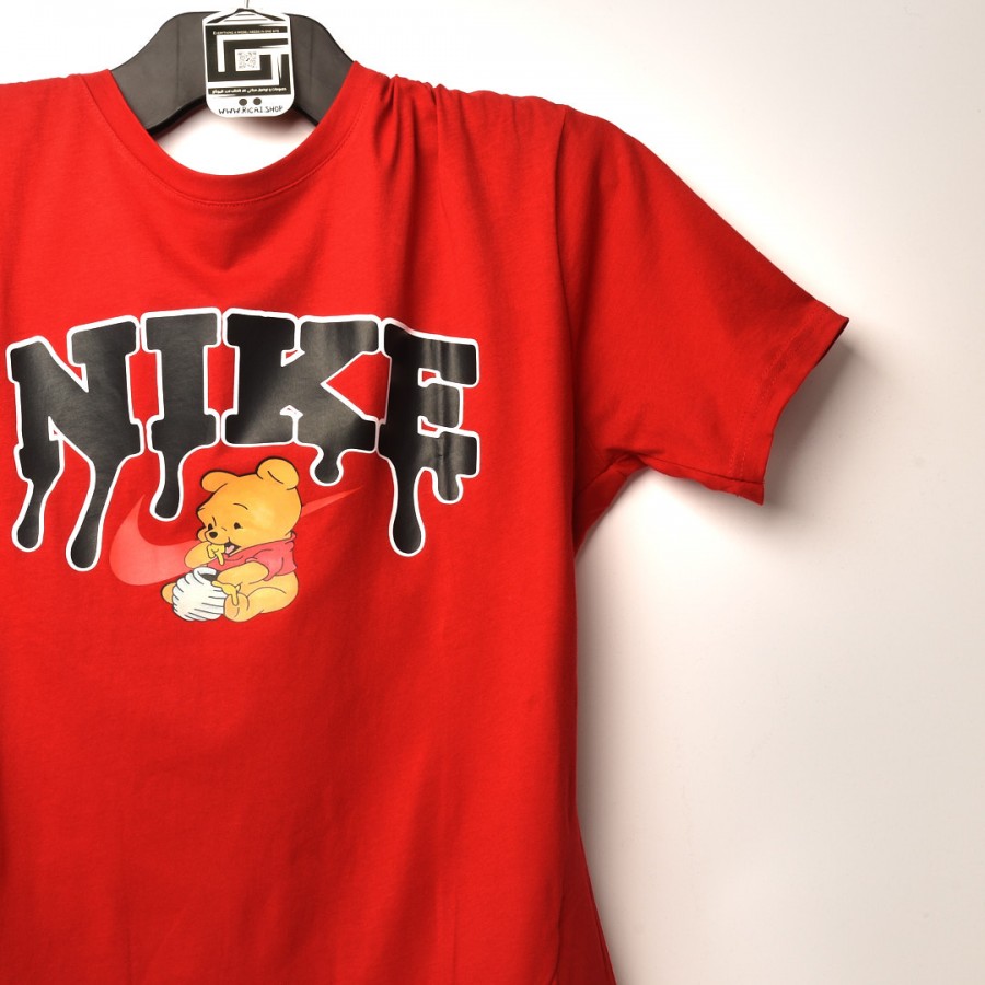 قالب شبه اوفر سايز ((فصال اوربي)) تيشرت قطني مطبوع NIKE عنق دائري احمر