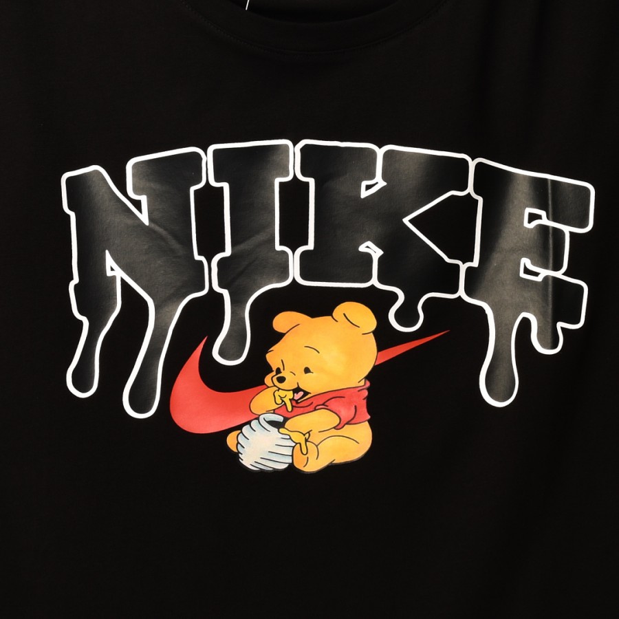 قالب شبه اوفر سايز ((فصال اوربي)) تيشرت قطني مطبوع NIKE عنق دائري اسود