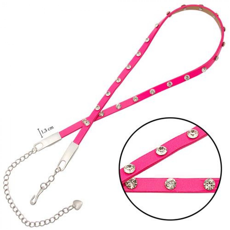 حزام من الجلد مع سلسلة معدنية قابلة للتعديل وأحجار كريستال