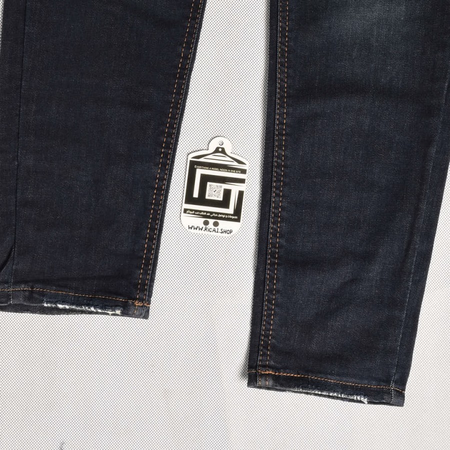 بنطلون جينز سلم فت خصر نورمال حركة بسيطة باللون الازرق الغامق