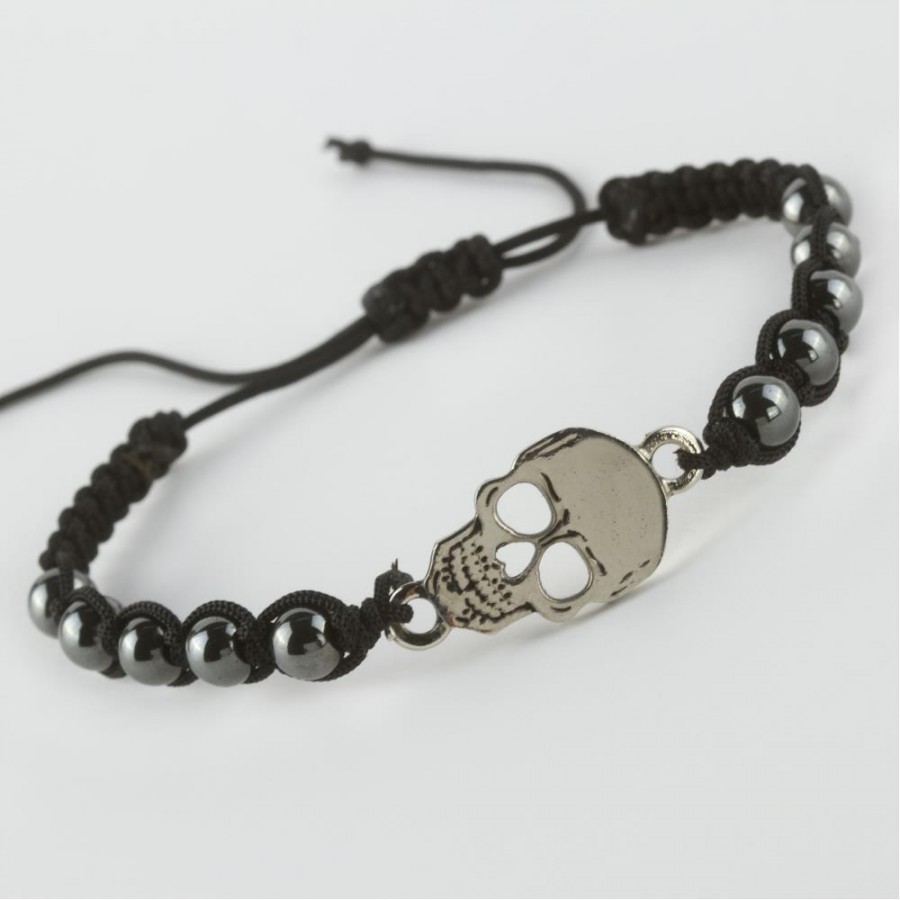 سوار مضفر من الحجر الطبيعي الهيماتيت على شكل جمجمة